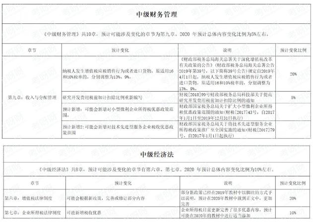 20年中級教材有什么變化?