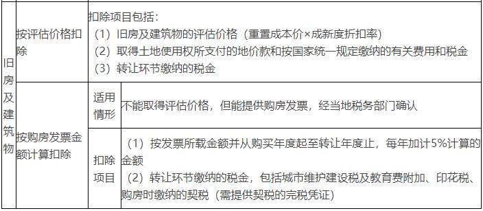 納稅人轉讓舊房及建筑物,凡不能取得評估價格,但能提供購房發票的,經當地稅務部門確認,可以扣除: