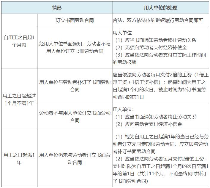 【提示】勞動關系的建立時間只與“用工之日”有關,與是否簽訂了書面勞動合同、書面勞動合同的簽訂時間(先簽合同后用工或先用工后簽合同)、書面勞動合同約定的合同期限起算點、試用期滿時間、發放第一筆工資的時間等均無關。