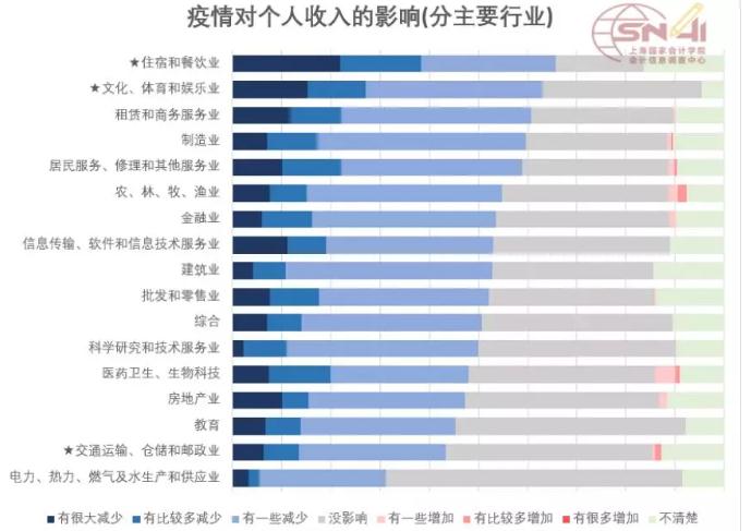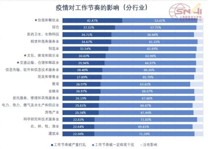 疫情影響企業財會人員最多的行業是住宿和餐飲業、文化體育和娛樂業,都是本次疫情相關的困難行業。