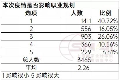 工作年限越短的人,疫情對其職業規劃影響越大。