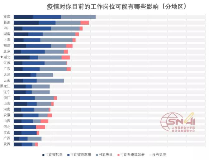 疫情影響企業財會人員工作崗位,影響程度靠前的地區是重慶、新疆、四川這樣的非重點疫區。疫情的影響可遠不止是重點疫區,由此可見一斑。