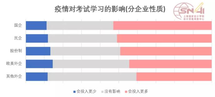 國企的財會人員考試學習更積極,民企的財會人員積極性也很高,外企的財會人員增加考試學習的意愿相對要低。