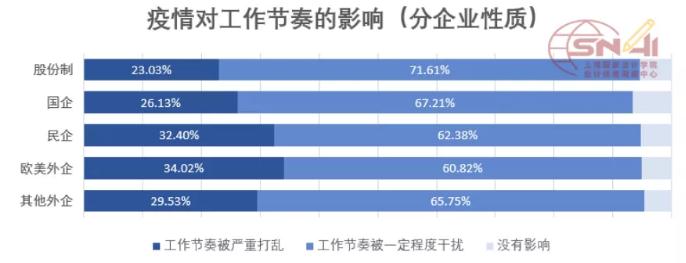 疫情對民企和外企財會人員的影響較大,對國企財會人員的影響最小。