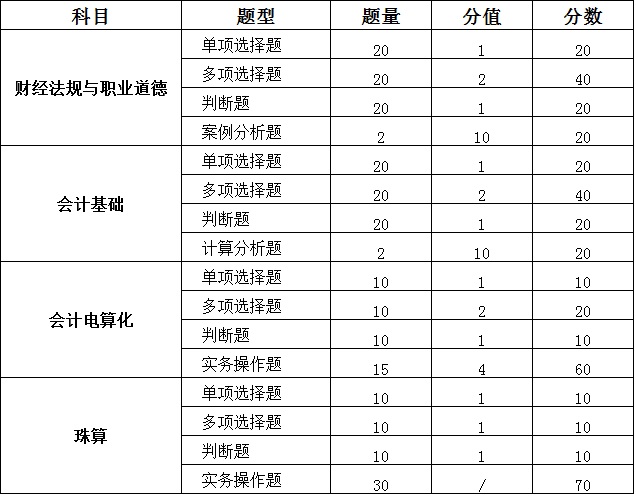 2、珠算考試分客觀題和實務操作題。客觀題含單項選擇題、多項選擇題和判斷題,實務操作題含珠算加減法題、乘法題、除法題。