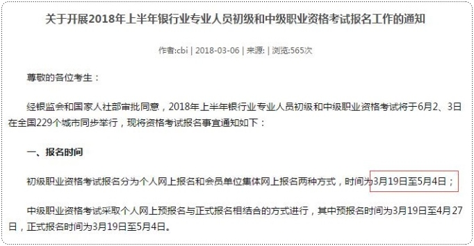 關于銀行業專業人員職業資格考試時間的公告 根據人力資源社會保障部辦公廳《關于度專業技術人員資格考試計劃及有關事項的通知》(人社廳發【2018】142號)文件精神,現將銀行業專業人員職業資格