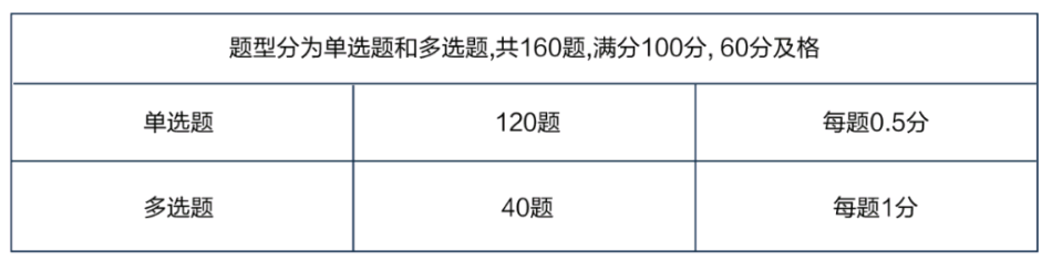 考試科目:專業知識,考試形式:計算機考試(閉卷機考)考試題型:單選120題(每題0.5分),多選40題(每題1分),滿分100分,考試時間150分鐘。