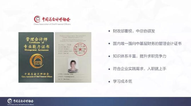 管理會計師(初級)專業能力認證,又稱為初級管理會計師證書,英文簡稱MAT,是由中國總會計師協會(中總協)頒發,是中國財經領域唯一的管理會計人才鉑金級證書,主要面向中基層從業者和大學在校生。學員在接受管理會計師專業能力培訓后,參加并通過由中總協主持的管理會計師專業能力考試后,則可取得由中總協頒發的初級管理會計師證書。