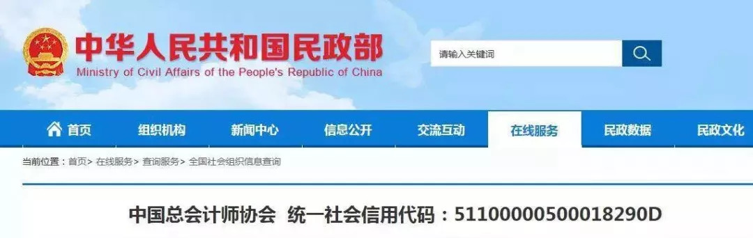 進入官方網站后點擊全國性社會組織查詢民政部登記,即可查詢其登記證號、業務主管單位等相關信息。