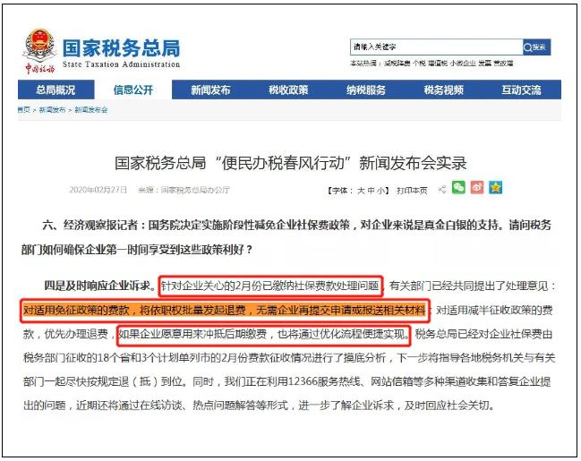 1、2月份已繳納的社保費將批量發起退費,無需企業再提交申請或報送相關材料!