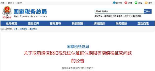 增值稅一般納稅人取得2017年1月1日及以后開具的增值稅專用發票、海關進口增值稅專用繳款書、機動車銷售統一發票、收費公路通行費增值稅電子普通發票,取消認證確認、稽核比對、申報抵扣的期限。納稅人在進行增值稅納稅申報時,應當通過本省(自治區、直轄市和計劃單列市)增值稅發票綜合服務平臺對上述扣稅憑證信息進行用途確認。 增值稅一般納稅人取得2016年12月31日及以前開具的增值稅專用發票、海關進口增值稅專用繳款書、機動車銷售統一發票,超過認證確認、稽核比對、申報抵扣期限,但符合規定條件的,仍可按照《國家稅務總局關于逾期增值稅扣稅憑證抵扣問題的公告》(2011年第50號,國家稅務總局公告2017年第36號、2018年第31號修改)、《國家稅務總局關于未按期申報抵扣增值稅扣稅憑證有關問題的公告》(2011年第78號,國家稅務總局公告2018年第31號修改)規定,繼續抵扣進項稅額。 ——《國家稅務總局關于取消增值稅扣稅憑證認證確認期限等增值稅征管問題的公告 》(國家稅務總局公告2019年第45號) 二、政策解讀