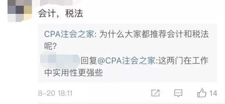 所以,強烈建議大家,如果你是應屆生,或者是想要跳槽的在職人員,如果你想開始準備CPA,但是心里又沒有明確的方向,可以選擇將會計,審計,財管和稅法作為優先通過的科目。