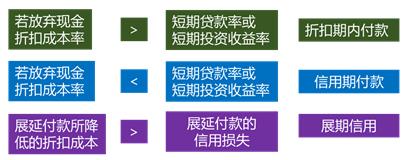 如果面對兩家以上提供不同信用條件的賣方,應通過衡量放棄折扣成本的大小,選擇信用成本最小(或所獲利益最大)的一家。