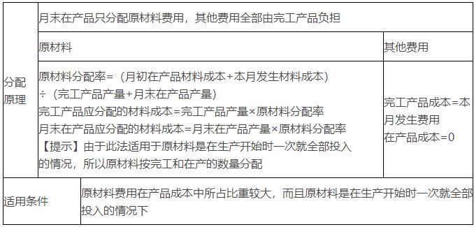 一是“倒擠法”,即先確定月末在產品成本,再用待分配費用減月末在產品成本得出完工產品的成本;