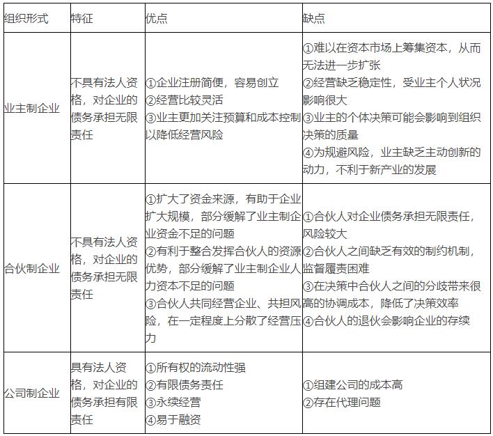 典型的企業組織形式有三種:業主制企業、合伙制企業以及公司制企業。