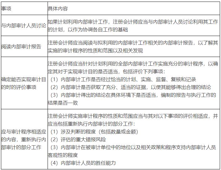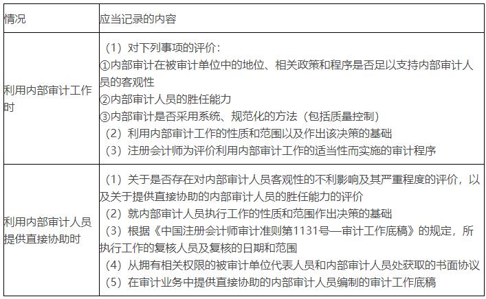 注冊會計師在審計過程中利用內部審計工作應當記錄在審計工作底稿中,歸納如下表。