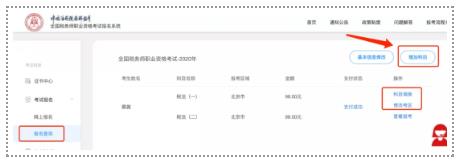 接下來應點擊“報名查詢”,便可以找到進行“修改考區”和“科目調換”的操作入口,如下圖。