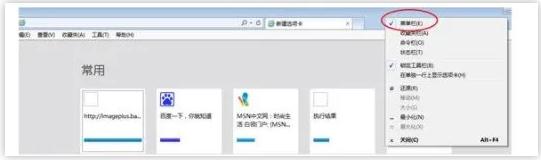 1、顯示IE菜單欄,如果IE瀏覽器中菜單欄不顯示,請在地址欄上邊或右邊空白處單擊鼠標右鍵,系統會顯示如下圖的下拉菜單。