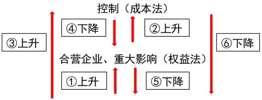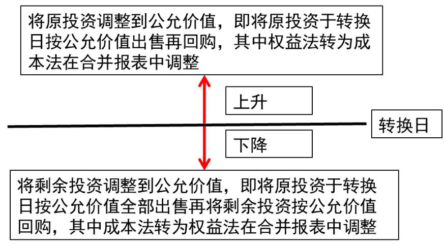 下降 | (4)成本法轉換為權益法 | 剩余投資追溯調整權益法賬面價值 | 剩余投資調整到公允價值 |