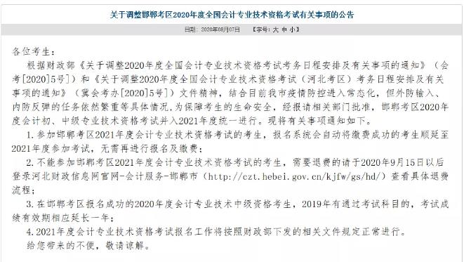 眼瞅著離2020年中級會計職稱考試的時間是越來越近了...上周官網宣布:北京地區2020年度初中級會計職稱考試取消~臨了臨了!財政部再次宣布,唐山地區、邯鄲地區2020年度中級會計職稱考試取消!!