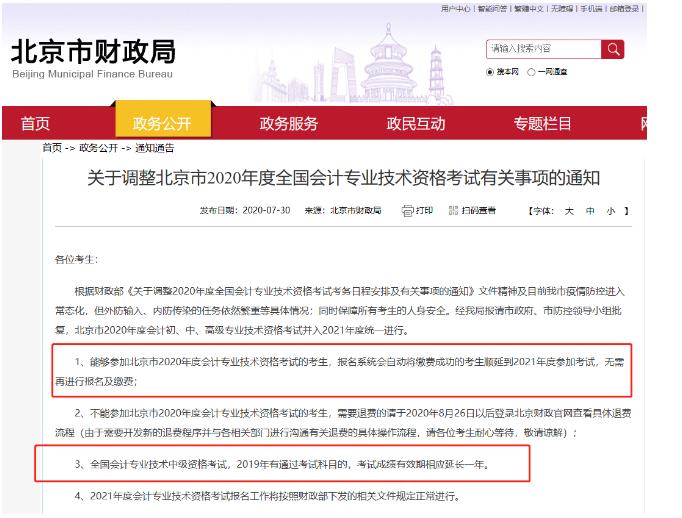 3、北京地區取消2020年會計職稱考試,北京地區考生要按照通知重新規劃考試安排;