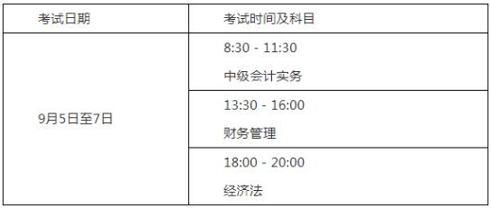 中級資格考試于2020年9月5日至7日舉行,共3個批次,各科目具體考試時間如下: