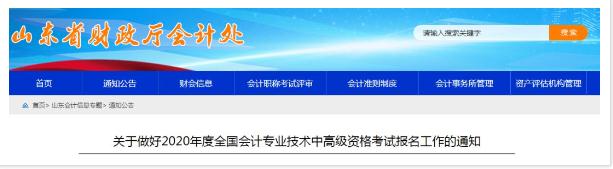 山東省財政廳發布中級報名簡章,報名時間為2020年3月12日0:00至3月30日12:00,網上審核時間至3月31日12:00截止。報名實行網上報名,由所選擇的審核點網上審核。