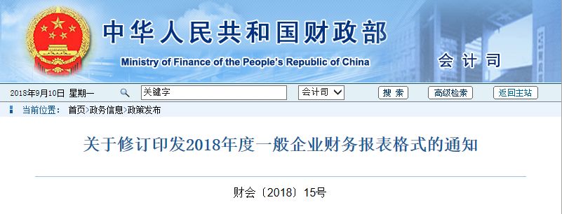 2018年9月07日,財政部發布《關于2018年度一般企業財務報表格式有關問題的解讀》,對財務報表格式政策進行了解讀,至少應在2018年9月30日的中期財務報表中采用。