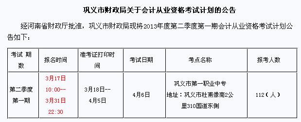 3、考生報名和考試期間發生的異常,須本人攜帶身份證到鞏義市財政局508室登記后報河南省財政廳處理。辦理時間為正常工作日辦公時間。