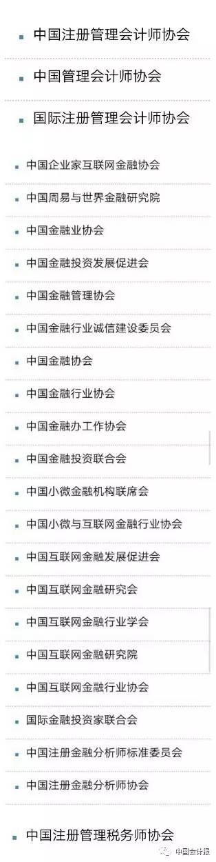 對于會計朋友們關心的財會、稅務、金融和互聯網等領域,小編從民政部截至目前公布的“離岸社團”“山寨社團”名單中找到了這些: