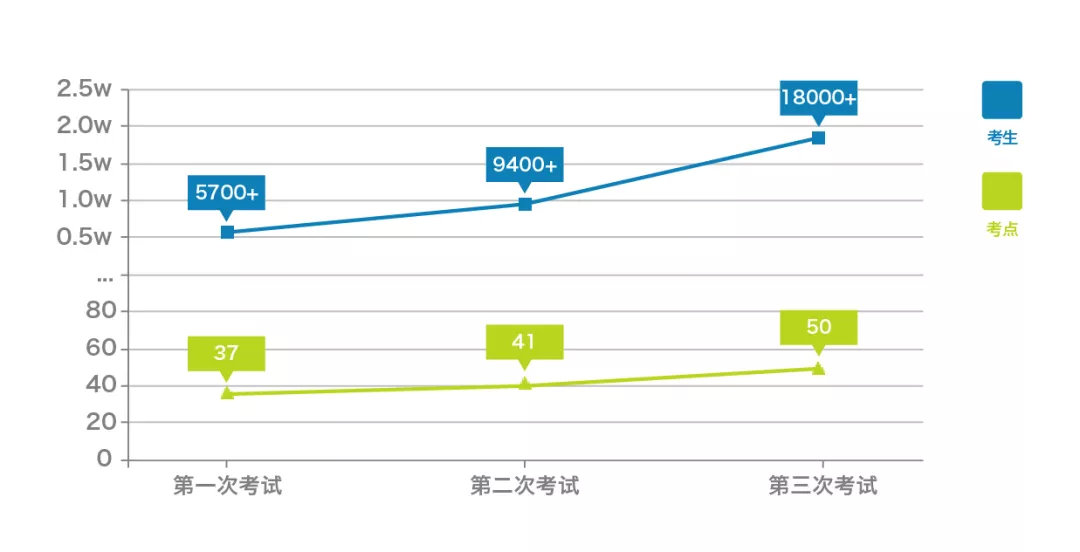 本次考試考點數量較上次增加9個18000余名考生人數較上次增加一倍,多項考試記錄被刷新。