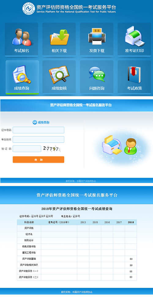 年資產評估師考試成績查詢入口已經于11月15日開放,河北石家莊、唐山市、秦皇島市、邯鄲市、邢臺市、保定市、張家口市、承德市、滄州市、廊坊市、衡水市考生請登錄中國資產評估協會-考試服務平臺-成績查詢進入查詢,以便及時查詢及做好相關領證安排。