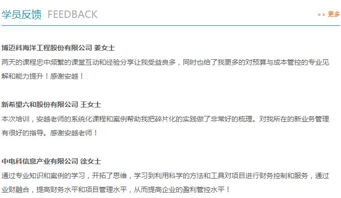 安越《項目預算和成本管控實務》課程,讓企業系統掌握從全面預算管理角度對項目進行全過程控制的方法精髓,并且將預算管理與成本控制環環相扣,讓項目的盈利管理貫穿始終,從根本上提高項目決策水平和盈利能力。