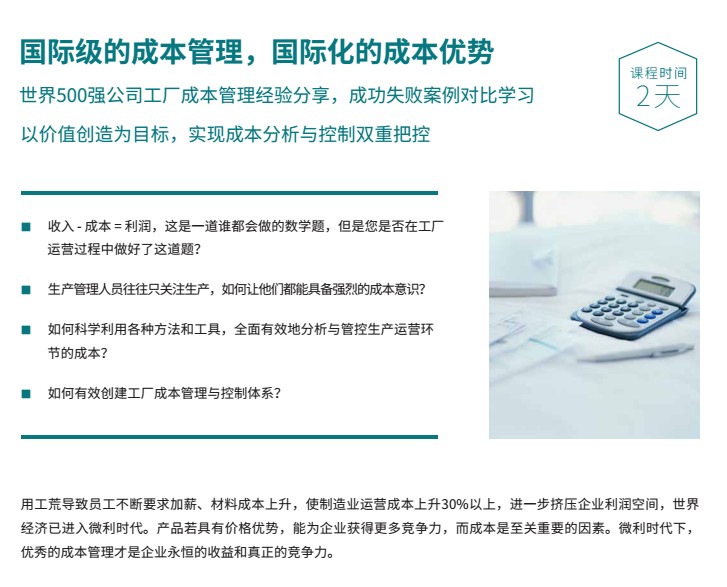 【掌握有效工具】掌握全面有效的分析與管控工廠成本的方法和工具