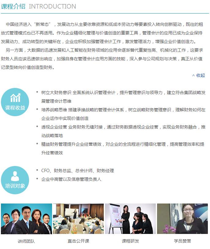 安越咨詢-IMA聯合發布 全球首發課程,培養管理會計國際化人才。 安越《管理會計高級研修班》課程,助力企業創建一支高效率的財務管理團隊,全面掌握管理會計體系的實質及管控方法,通過財務數據透視企業經營,實現業務財務融合,推動戰略落地,并推動企業價值創造。