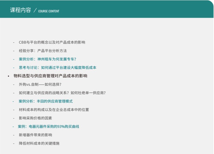 以國內外知名公司為案例,掌握研發成本管理的方法和具體實戰技巧 理解產品質量和成本沖突的根本原因和解決思路 明確研發成本管理的整體流程及其各個階段的管理要點 掌握科學的研發成本投入與收益衡量的理念和模型