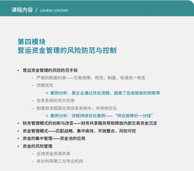 深入學習和掌握構建先進營運資金管理中的風險控制和防范