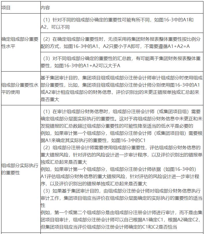 基于集團財務報表審計目的,集團財務報表整體的重要性、集團審計中適用于特定類別的交易、賬戶余額或披露的一個或多個重要性水平(如有)以及實際執行的重要性的關系如下圖所示。