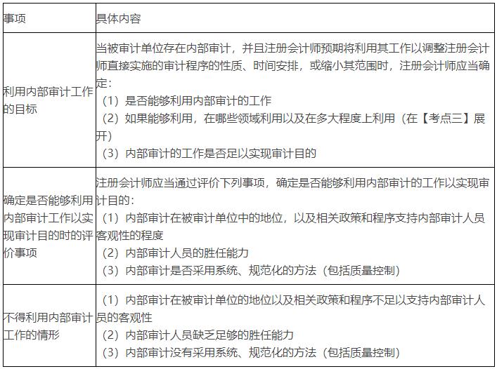 (4)涉及注冊會計師按照規定就內部審計,以及利用內部審計工作或利用內部審計人員提供直接協助作出的決策。