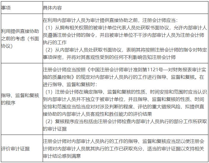 (3)如果擬利用內部審計人員提供直接協助,適當地指導、監督和復核其工作。