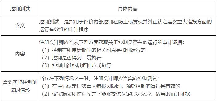 控制測試的含義、內容和所需測試情形,歸納如下表。