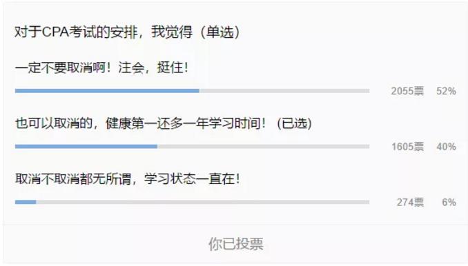 這樣的進度下,不少考生希望能取消或延期今年CPA考試,多點備考時間求個安慰: