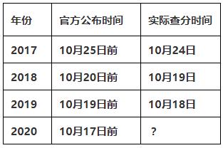 大家可以看到,前幾年的實際查分時間永遠都比官方公布的時間提前一天。10月17日是周末,一般來說,官方不會選在周末公布成績。所以,年中級會計的成績10月16日出,基本是實錘了!