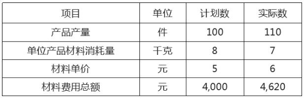 要求:根據表中資料,材料費用總額實際數較計劃數增加620元。運用連環替代法,計算各因素變動對材料費用總額的影響。