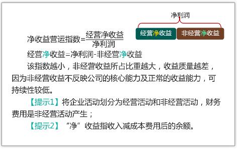 3.凈收益營運指數= 經營凈收益/ 凈利潤