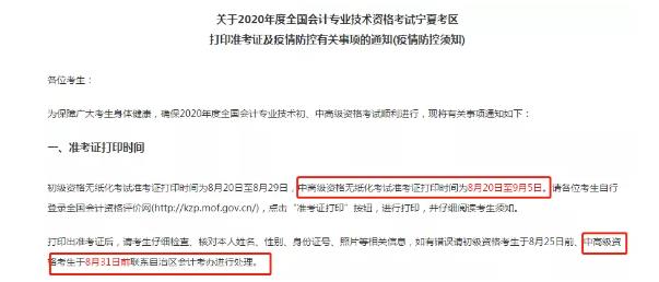 2、各個地方公布了會計職稱考試準考證打印通知,考生要在截止日之前完成下載打印;